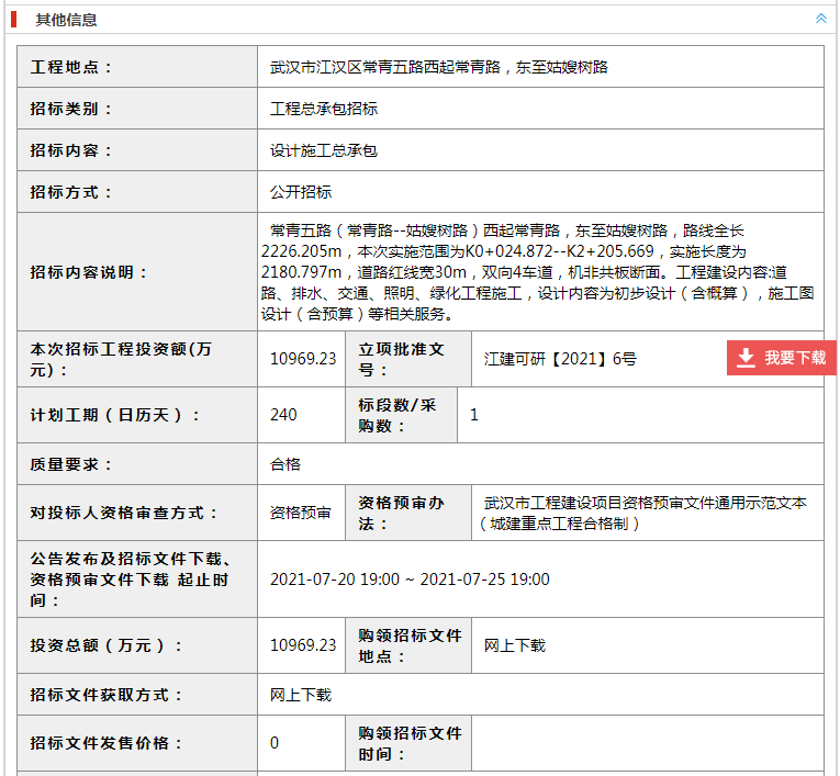 4. 總投資10969萬,武漢市常青五路(常青路-姑嫂樹路)提升工程