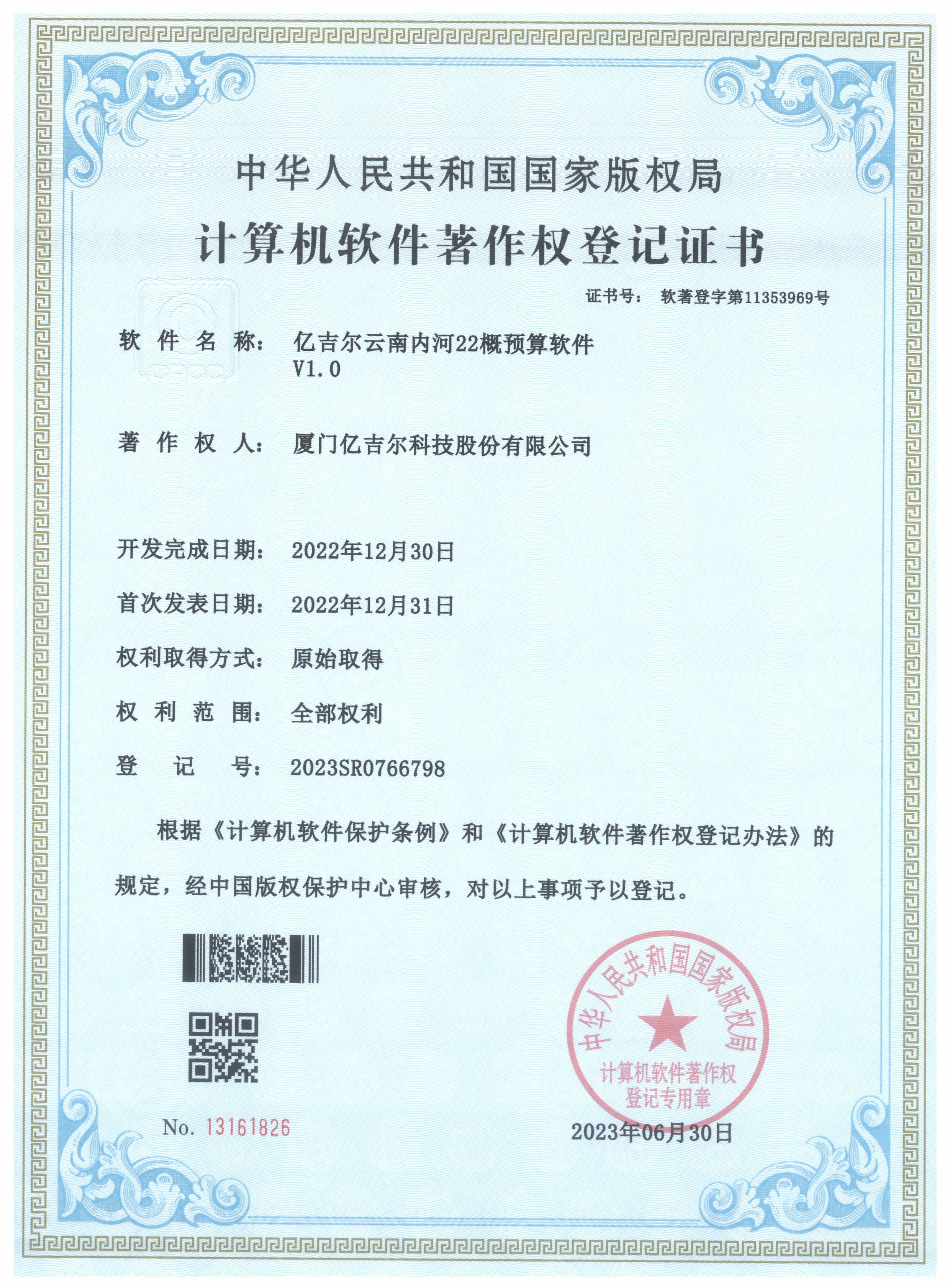 億吉爾云南內河22概預算軟件登記證書(2023R11L0546651)